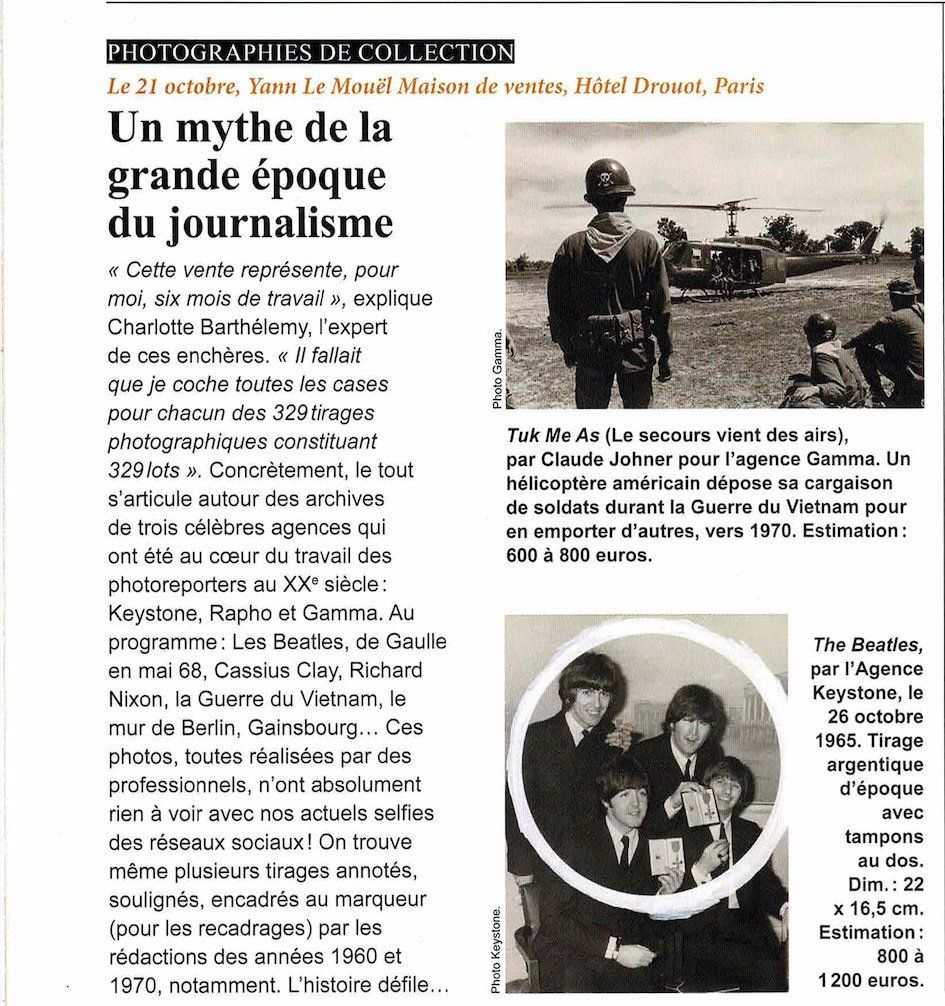 GAZETTE DROUOT - 15 juillet 2022 - Présentation de la vente GAMMA - RAPHO - KEYSTONE du 21 octobre